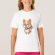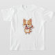 An adorable and expressive illustration of a chubby corgi looking overheated yet endearing, tongue out and cheeks blushing. Drops of sweat and tiny motion splashes emphasize the feeling of heat, while the corgi waves a traditional folding fan decorated with bold characters and soft patterns. The warm fur tones, rounded shapes, and big closed eyes create a playful, kawaii charm. Set against a dark background, the bright colors and lively details make the scene feel humorous, cozy, and full of personality.