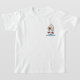 A cheerful illustration of a cute white cartoon duckling captured in a moment of pure joy. The duckling is wearing bright red wellington boots and is mid-jump, making a big splash in a blue water puddle. Its wings are outstretched and its beak is open in a laugh. The clean line art and vibrant colors create a playful and happy scene.