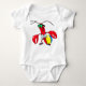 Dieses Bild zeigt ein weißes Baby-Kleidungsstück, das mit einem Cartoon-Hummer mit grüner Sonnenbrille bedruckt ist und ein Schild trägt, das "Life’s a Beach" lautet und neben einem bunten Beachball stehend ist. Das spielerische, sommerliche Design macht es zu einer lustigen und fröhlichen Wahl für personalisierte Babykleidung - ideal für Ferien-Outfits oder als leichtes Geschenk für Strandfreunde.