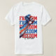 The central image is a dynamically rendered clenched fist painted with the stars and stripes of the American flag. Bold, stacked red typography emphatically repeats the word "FREEDOM", while the word "forever" is featured in a strong script underneath. This design is perfect for celebrating Independence Day (4th of July), Memorial Day, Veterans Day, or simply showing everyday USA pride and belief in the ideals of liberty.