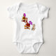 Dieses weiße Baby-Kleidungsstück ist mit einem Cartoon-Hahn mit wilden Augen und schwindenden Gliedmaßen ausgestattet, der von einem winzigen Wurm, der neben ihm grinst, eindeutig erschreckt wird. Die übertriebenen Ausdrücke und der klassische Raubtier-Spaß machen es zu einem lustigen, animierten Design, das sich perfekt für kleine Fans von Slapstick-Comedy und alberner Tierantik eignet.