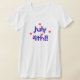 "4. Juli!" in rot, weiß und blau, mit roten Sternen. Feiern Sie den Tag.