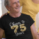 75e anniversaire Cheers à 75 ans T-shirt Ballons d'or. Célébrez un jeune de 75 ans avec ce t-shirt ou d'autres vêtements avec le dicton CHEERS TO 75 YEARS avec des numéros de fausse feuille d'or métallique. ASSISTANCE : Pour obtenir de l'aide sur la modification de la conception, le transfert de la conception à un autre produit ou pour la coordination des éléments, contactez le concepteur AVANT LA COMMANDE via l'onglet MESSAGE Conversation Zazzle ci-dessous ou envoyez un courriel à makeitaboutyoustore@gmail.com.