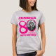 Happy 80th Birthday pink text, name and two photos t-shirt. Fun double sided 80th personalized photo t-shirt in bold pink text design. Personalize this birthday shirt with a photograph of the birthday girl in the middle of the number 0 on both the front and the back. Great idea for adding some fun to a milestone eightieth birthday party celebration. Other matching items and colors options are available. Exclusive design by Sarah Trett for www.mylittleeden.com