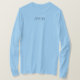 T-shirt bleu clair à manches longues avec les initiales P.E.O. sur le devant (pour le P.E.O. organisation) et le Be The Glow of P.E.O. logo sur le dos.