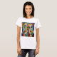 Einzigartiger T - Shirt mit abstraktem Bild, Kubismus Stil, farbenfrohe Gesichte, modern.
