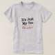 La conception des textes l'indiquant "est juste ma pièce en t - TRAITEZ ELLE !". Un trait horizontal gris divise les deux pièces, et elles sont également placées dans différentes polices et couleurs pour se ramollir.