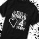 This fun 4th wedding anniversding design is perfect for fishing ary that have been married for 4 years and are still hooked on each other & love to go fishing ! Great for a 4th wedding anniversary party to celebrate 4 years of marriage ! Objets "Still Hooked After 4 Years" wedding anniversary quote w/ heart shaped fish hooks with fishing graphic in a distressed vintage design.