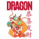 Ce dessin célèbre le Nouvel An chinois, plus précisément l'Année du Dragon. Il comporte un texte rouge gras "DRAGON" en haut, avec "Année de" écrit dans un style cursif le superposant. Ci-dessous se trouve une illustration artistique d'un dragon chinois traditionnel aux écailles dorées, aux accents turquoise et orange vibrants, et à un visage expressif. Accompagnant le dragon est un adorable personnage de style chibi qui ressemble à un petit lion ou un dragon, habillé en tenue festive. Le personnage tient un bâton, probablement une partie d'un lion ou d'un spectacle de danse dragon, ajoutant au thème de la fête. À droite, il y a quatre caractères chinois en gras : "恭 喜 财" (Gōng xǐ fā cái), qui se traduit par "Souhaiter la prospérité et la richesse". Le design a une atmosphère festive et joyeuse, combinant des éléments chinois traditionnels avec un style d'illustration mignon et moderne. L'arrière - plan noir fait ressortir vibramment les couleurs rouge et or.