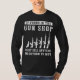 Ce tee ajoute une touche spirituelle à l'enthousiasme des armes à feu, vous rappelant que si vous êtes pris dans un magasin d'armes à feu, le seul achat autorisé est votre retour précipité à la maison!