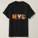 Un t-shirt d'art design de New York, qui célèbre la ville de New York à la mode pour les hommes et les femmes, et même un design génial pour les enfants à porter. Lettres d'aquarelle contemporaines colorées avec NYC à l'avant et à l'arrière du t-shirt. Super look tendance. Conçu par et aquarelle d'art par CricketDiane Artist / Designer pour Cricket House Studios Art et Design.