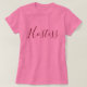 Un beau t-shirt pour votre hôtesse mariage, ce t-shirt rose présente "Hostess" écrit dans un joli texte cursif bordeaux. Achetez votre t-shirt hôtesse mariage dès aujourd'hui !