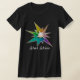 Cette T-Shirt brille avec les étoiles..Il y a une étoile blanche géométrique dorée éclatant au centre d'une étoile plus grande multicolore couleur arc-en-ciel éclatée. La couleur du T peut être changée... et l'écriture peut être personnalisée avec votre dicton, nom, etc. C'est une chemise amusante et dynamique et élégant avec beaucoup de bonne énergie à partager..