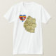 Un drapeau swazi en forme de coeur est placé à côté d'une carte de relief d'Eswatini sur ce T-shirt typiquement patriotique.