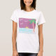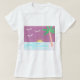 Ce T-Shirt blanc de base est conçu avec un coucher de soleil, un océan bleu, un palmier et un ciel magenta.