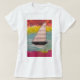 Bateau à voile avec voile principal à rayures sur une jolie eau bleue de l'océan avec ciel coloré en arrière - plan d'orange et jaune, une oeuvre d'art multimédia mixte.