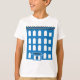 Dehors de l'avant de l'hôtel bleu avec beaucoup de fenêtres. Ce design semble vraiment efficace sur ce T-shirt garçon