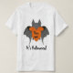 Un amusement et un T-shirt blanc flirty avec une batte de vampire drôle de bande dessinée tenant un coeur orange avec les mots "m'embrassent" et "c'est Halloween" là-dessus. Vous pouvez changer le texte si désirés.