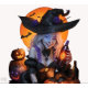 Une sorcière à la bière qui est faite avec le sort. Design graphique avec typographie. Noir et orange comme design d'halloween.