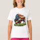 American Buffalo Bison avec un drapeau américain dans ses cheveux.Manger de l'herbe dans un champ dans un design peint à l'huile Laissez cette amusante conception amusante faire la conversation pour vous.