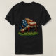 American Buffalo Bison avec un drapeau américain dans ses cheveux.Manger de l'herbe dans un champ dans un design peint à l'huile Laissez cette amusante conception amusante faire la conversation pour vous.