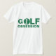 T-shirt d'obsession de golf. Vert foncé sur blanc. Club de swing de golfeurs. Vous pouvez aussi changer la couleur de la chemise blanche et le style de la chemise. Fait un grand cadeau pour la Fête des pères ou l'anniversaire de papa.