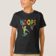 Le design de Basketball Hoops montre un joueur qui saute haut dans l'air pour claquer la balle dans le cerceau. Graphique amusant pour les fans et les joueurs de basket.