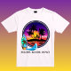 This inspired setting print captures the exquisite of the warm sunset stripes, palm silhouettes, and laid-back surf energy.