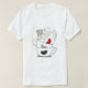 Un T-shorts moderne jeune, disponible en blanc ou noir, caractérisé au milieu en dessinant d'élégantes tasses de café qui sont dispersées par des bulles de mousse en forme de coeur ou de cercles, et au-dessus de chaque tasse d'un petit chat amusant assis ou regardant curieusement, avec des détails agréables de chats tels que les yeux brillants et les oreilles montrées. Le design donne un sens de chaleur et de confort et reflète l'amour du café et des chats ensemble dans un style gai et attrayant.