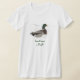Ce tee - shirt présente un canard colvert, très surpris de se retrouver entouré par une neige blanche et moelleuse d'une tempête. Son joli cou irisé vert, son bec jaune et ses ailes à motifs complexes se démarquent vraiment contre tout ce blanc! Le texte dit : Lord Love a Duck. Il peut être customisé ou supprimé.
