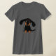 Drôle Chien chiot noir et bronzé brun et tan. Ce mignon T-shirt Wiener Dog est disponible dans de nombreux styles pour les femmes, les hommes et les enfants. Visitez Jenn's Doodle World pour plus de vêtements et de cadeaux mettant en vedette ce dessin amusant de chien Weenie.