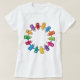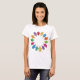 Des crayons colorés avec des visages en cercle. Ce design semble vraiment efficace sur ce T-shirt féminin