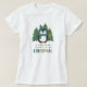Cette chemise de Noël amusante et humoristique présente un manchot tiré à la main, portant un casquette et une écharpe en bleu turquoise. Il se tient devant des arbres de Noël et tient un biscuit homme en pain d'épices. "C'est du pingouin de ressembler beaucoup à Noël."