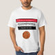 Ce T-shirt modifiable contient deux lignes de texte et un ballon de basket en dessous. Les couleurs des barres peuvent être changées, de même que le style, la taille et la couleur de la police. Modifiez le texte à ce que vous voulez qu'il dise. L'image du basket-ball peut être changée en une image d'équipe ou individuelle ou toute autre image graphique. Il peut même être supprimé. Cette conception peut être transférée à n'importe quel T-shirt. Profitez de votre nouveau T-shirt éditable Champions de basket !