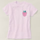 T-shirt rose amusant avec un chat kitty bleu assis dans une poche rose.
