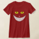 Un T-shirt de chat de Cheshire avec juste les plots réflectorisés, le nez, les favoris, et le sourire. Cette pièce en t célèbre un des caractères les plus mémorables du livre au pays des merveilles de Lewis Carroll les "aventures d'Alice" (Alice au pays des merveilles dans la culture populaire). Cette conception a le sourire du chat de Cheshire dans une expression idiote.