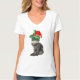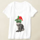 Chat de Père Noël de Noël posant avec son casquette mignon de Père Noël, image en noir et blanc avec le casquette rouge et gui