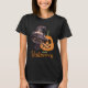 Happy t-shirt Halloween avec un mignon chat noir en casquette sorcier et un citrouille souriant, sculpté avec un texte personnalisé.