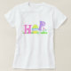 Chemise de Pâques d'amusement ! "Houblon" écrit dans une conception tirée par la main avec un oeuf de pâques et des fleurs de ressort parmi les lettres.