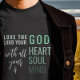 T-shirt chrétien avec une citation de Matthieu 22:37 "Aimez le Seigneur votre Dieu avec tout votre coeur et avec tout votre âme et avec tout votre esprit." en calligraphie mixte et typographie minimaliste. Ce design de foi moderne et tendance est le cadeau parfait et la marque de mode. #christian #religion #écritures #foi #bible #jesus