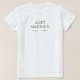 Dispose de deux coeurs dans le sable et les initiales de la mariée et du marié, Juste texte marié et date mariage sur le dos, grand t-shirt pour les jeunes mariés.