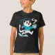 a cheerful cartoon cat wearing a blue sweater joyfully runs with a steaming mug of coffee accompanied by the phrase coffe time