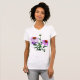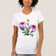 T-shirt col arrondie pour femmes. Image distinctive des bourgeons et des fleurs de confleur pourpre