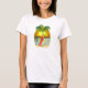 Bonnes fêtes des plages sablonneuses chaudes de votre plage tropicale préférée d'île. Palmier décoré des ornements et des lumières de Noël, avec une rétro planche de surf se penchant contre l'arbre de Noël dans l'avant un coucher du soleil au-dessus de l'océan.