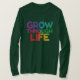 Le design accrocheur des t-shirts présente le texte "Grow Through Life" dans un dégradé multicolore vibrant. Le texte ludique combine des lettres en caractères gras pour "Grow" avec un délicat script cursif pour "Through Life". Les deux moitiés sont recouvertes d'un spectre de couleurs, certaines lettres se chevauchant pour un soupçon de fantaisie.