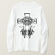 La croix de style tatouage Tribal avec deux crânes flambants avec des crocs est un design unique pour tous les vêtements de couleur claire.