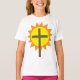 Croix dressée contre un soleil jaune vif. Ce design semble vraiment efficace sur ce T-shirt Girls