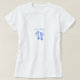 Un bébé garçon tee - shirt avec de mignons empreintes bleues contre un arrière - plan bleu marbré doux. Personnalisez en ajoutant le nom de votre bébé garçon au texte personnalisable qui dit : C'est un garçon. Parfait pour la future mère à porter à son baby shower.
