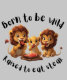 Ce sweat - shirt à capuche de chemise présente un groupe de mignons petits lions assis autour de manger du steak avec la citation "Né pour être sauvage, élevé pour manger du steak." C'est un design parfait pour vos petits carnivores.