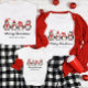 Ce t-shirt de Noël à pingouins présente une jolie illustration de quatre pingouins noirs et blancs avec le dicton : Joyeux Noël. Personnalisez-le : ajoutez votre nom de famille, le nom d'un enfant, ou changez de salutation à votre goût! Un adorable t-shirt familial pour Noël !